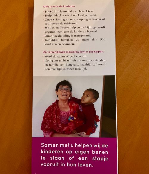 Het jaar hebben we afgesloten op dinsdag 16 december met een gezellig samen zijn in ons atelier op de zolder van het parochiehuis. Wij hebben daar onze gasten ontvangen van de stichting PhySCI en de stichting KIGMom hen een donatie van te geven. Stichting PhySCI helpt kinderen in Bangladesch met een lichamelijke en meervoudige handicap. Voor de meeste kinderen is dit de eerste kans op aandacht, respect, zorg, therapie, en ontwikkeling. Professionals van FhySCI reizen elk jaar naar Bangladesch voor het opzetten van deze zorg. Het voornaamste doel is kennisoverdracht zodat Bengaalse werkers en moeders leren zorg te geven aan de kinderen. Ze ontvingen € 3000. De stichting KIMG (Kleine ingrepen Mooie gevolgen) Soms weten mensen met weinig geld of psychische problemen zich met moeite staande te houden. Door een kleine ingreep in de directe woon en leefomgeving kan voor een positieve wending zorgen, waardoor mensen een frisse(her)start kunnen maken. Ze ontvingen € 1000